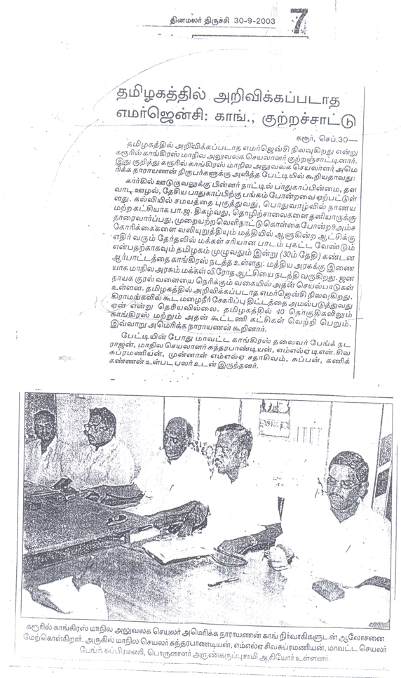 - Emergency period in Tamilnadu – 30 Sep, 2003
