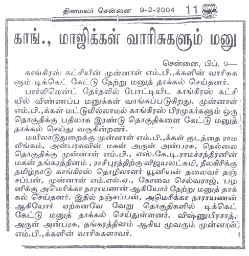 - Nomination filed to congress committee for parliament election – 9 Feb, 2004