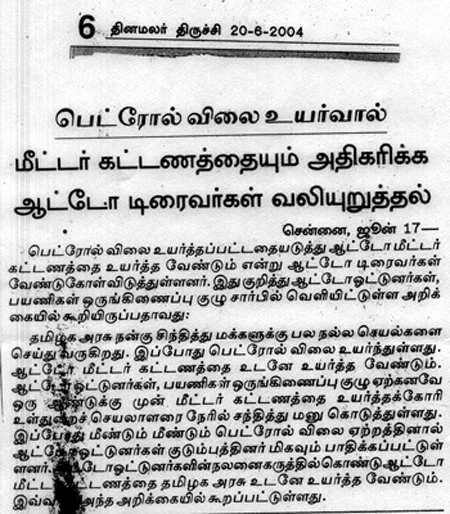 - Auto Driver’s request to hike the Auto Meter Fare – 20 Jun, 2005