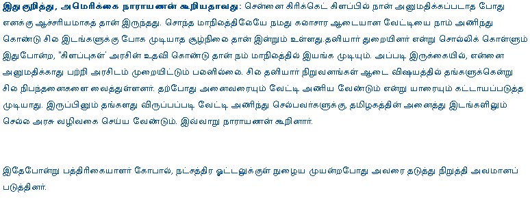 - Dhotis is a indecent – 12 Jul 2007