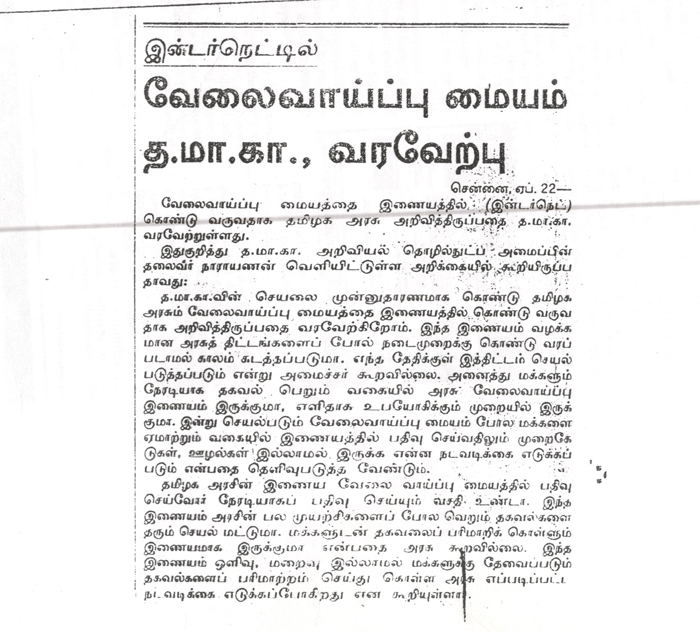 - Website for Employment launced — May 2