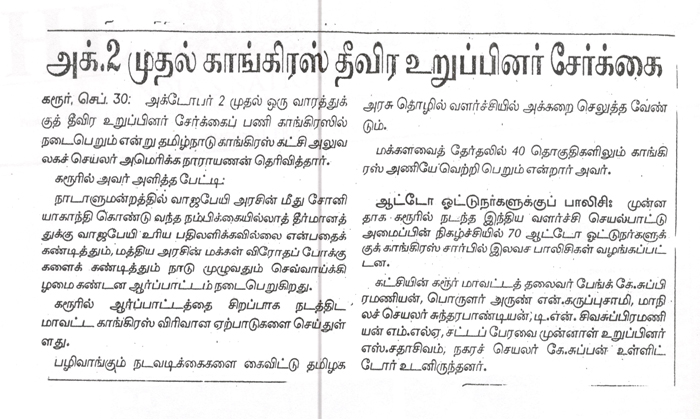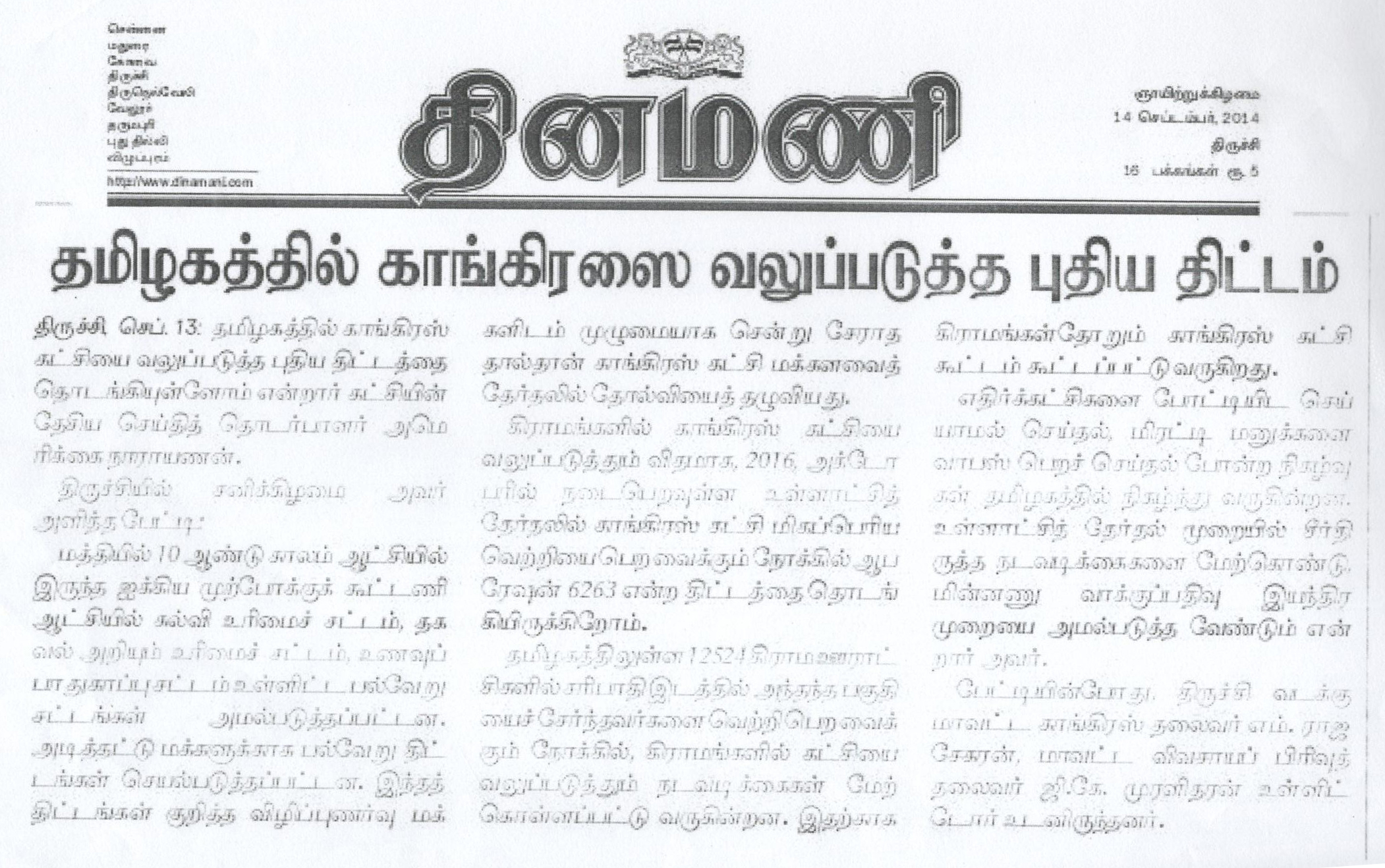 - The Tamilnadu Congress plan to strength – 14 Sep 2014