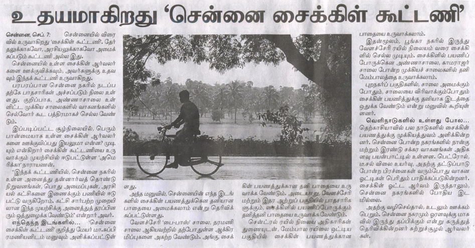- Coalition of Chennaites for Cycling on Sept 08,2008